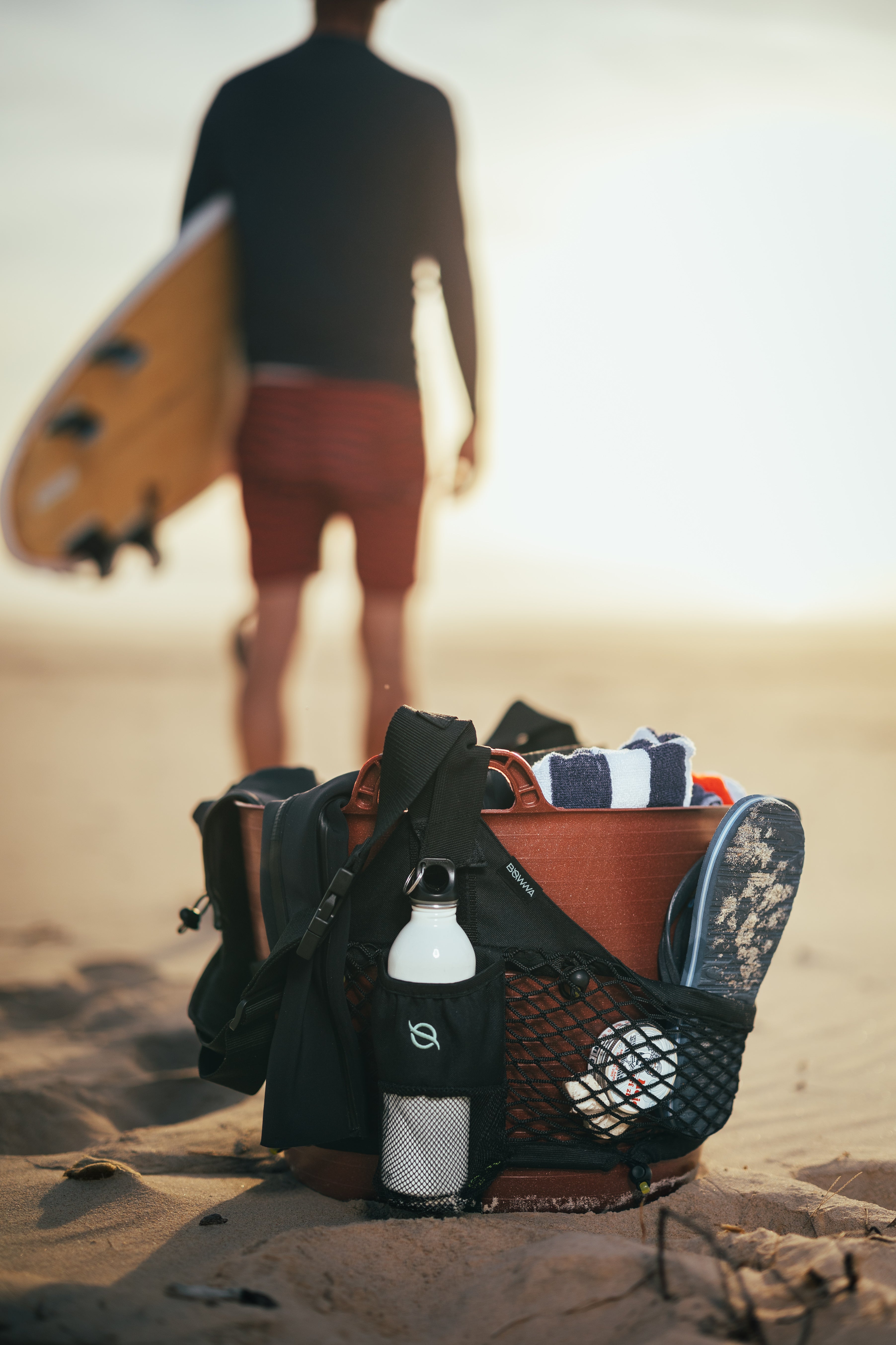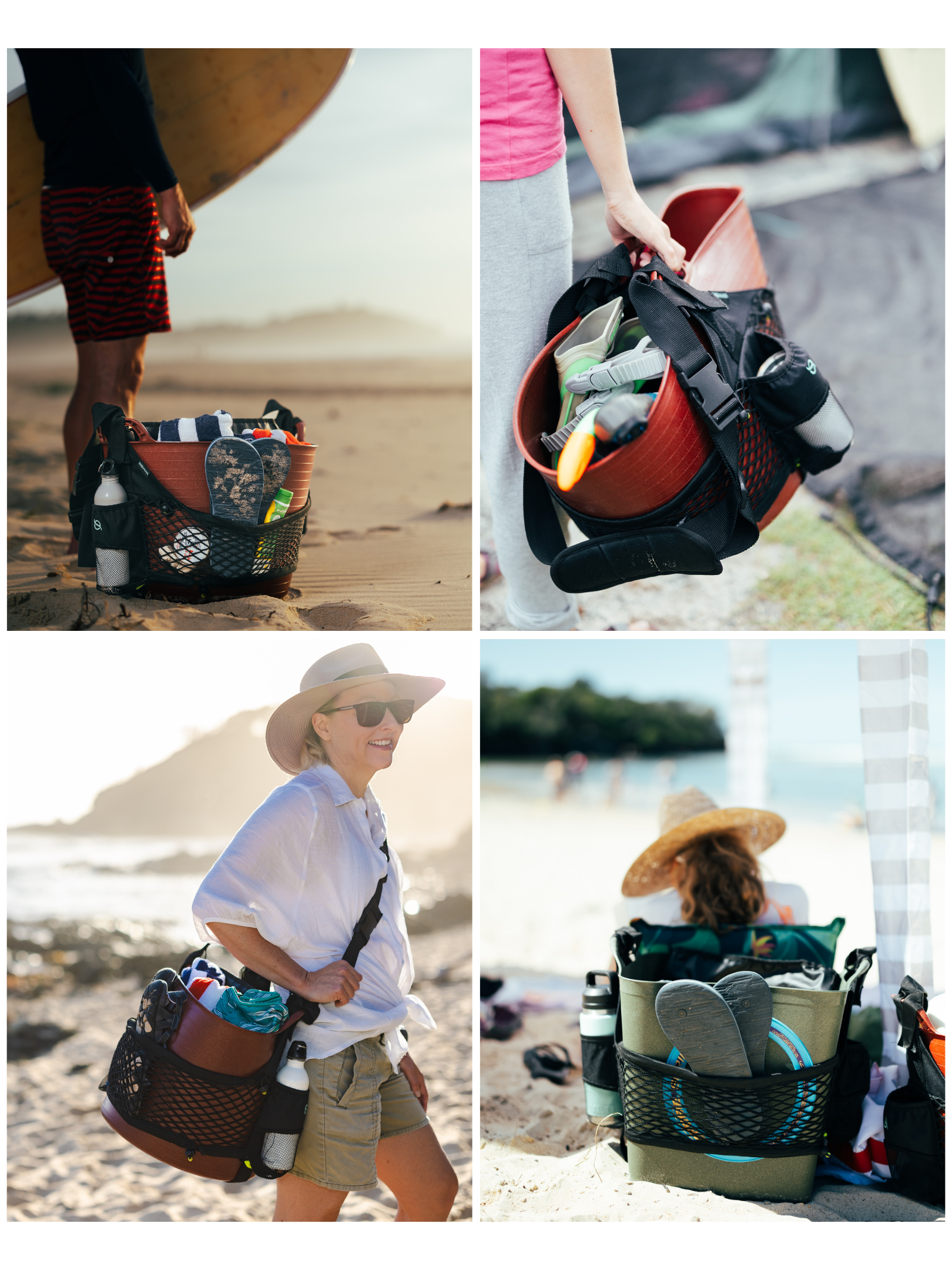 INTRODUCING The Bowwa® Bucket System, a revolutionary hybrid product that combines the practicality of a bucket with the versatility and comfort of a bag. Carry more gear hands-free, easily separate wet and dry items and effortlessly stay organised – Bowwa® lets you grab life by the bucket and go!