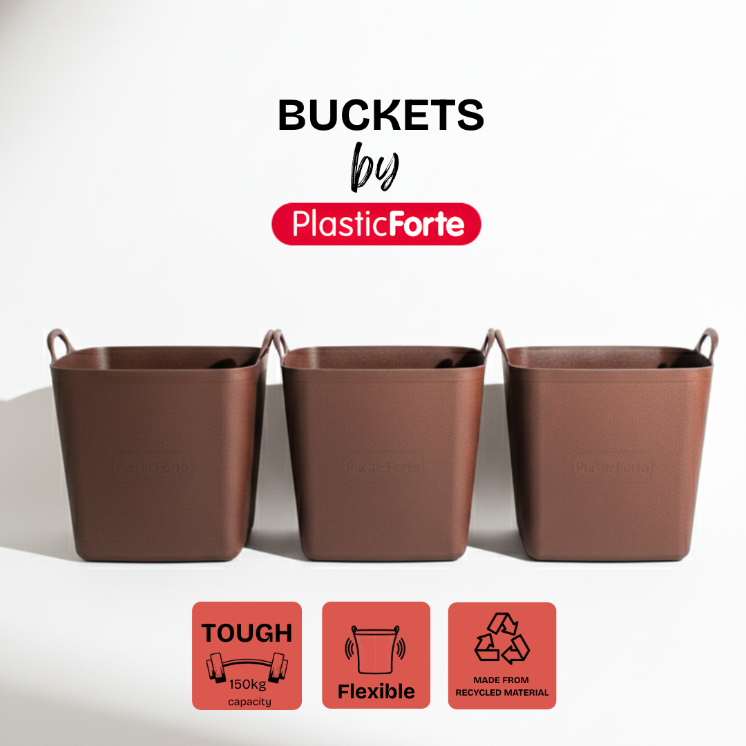 Sourced from Spain: 100% Recycled "PolyAl" We searched for a bucket that matched the toughness of our straps, and we found it. Manufactured by Plastic Forte in Spain, these tubs are crafted from recycled Tetra Pak cartons (PolyAl). This unique blend of plastic and aluminium creates a material that is incredibly durable, UV-resistant, and waterproof.