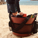Clipping your pouch in ensures it stays securely fastened to the top of the bucket. This keeps the zipper opening conveniently accessible, making it easy to access your essentials with a relaxing reach of your arm.