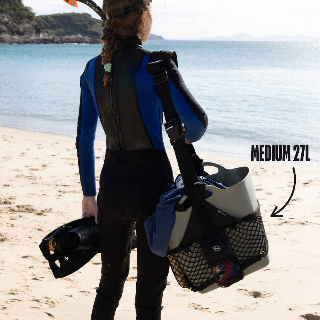 This is my second Bowwa bucket. The original big bucket for taking everything the family needs for a day at the beach and now the new 27L which is perfect When I head of for a solitary swim