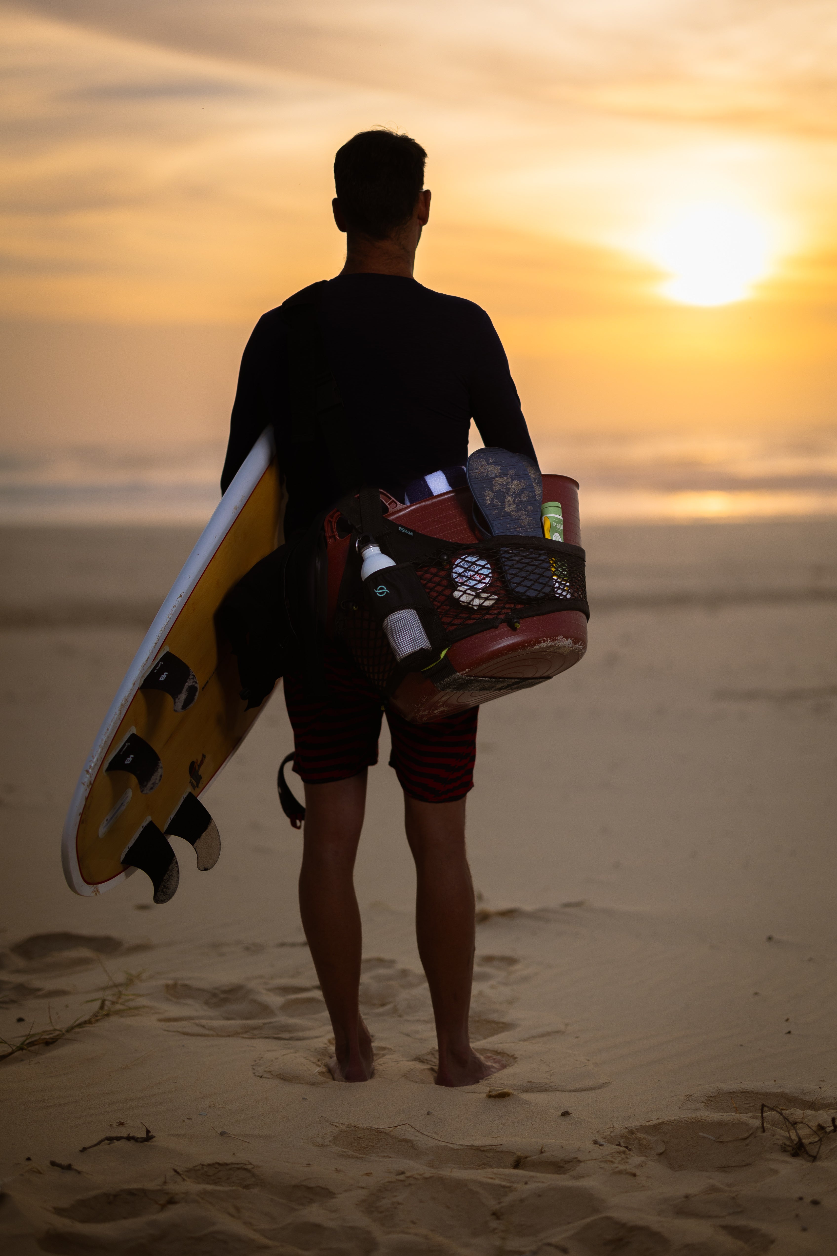 This trusty sidekick is perfect for a range of tasks. Its circular shape makes it ideal for everything from a solo surf trip or a day at the beach to organising loose items in the boot of your car. Its flexible, semi-rigid material is tough enough to hold its shape but also allows you to fit it into tight spaces. It’s the ultimate grab-and-go solution to generally keep things contained and sorted, no matter the adventure.